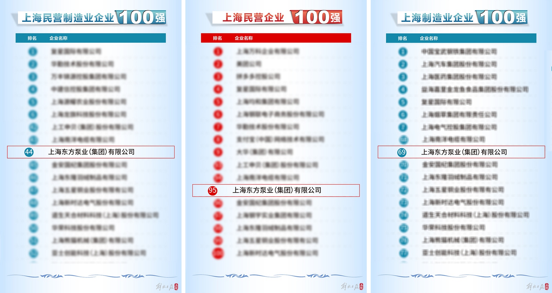 近日,2024上海百強企業發布會順利召開并發布了多項百強企業榜單。上海東方泵業(集團)有限公司在此次評選中榮獲2024上海民營企業100強(第95名)、2024上海民營制造業企業100強(第44名)、2024上海制造業企業100強(第69名)。